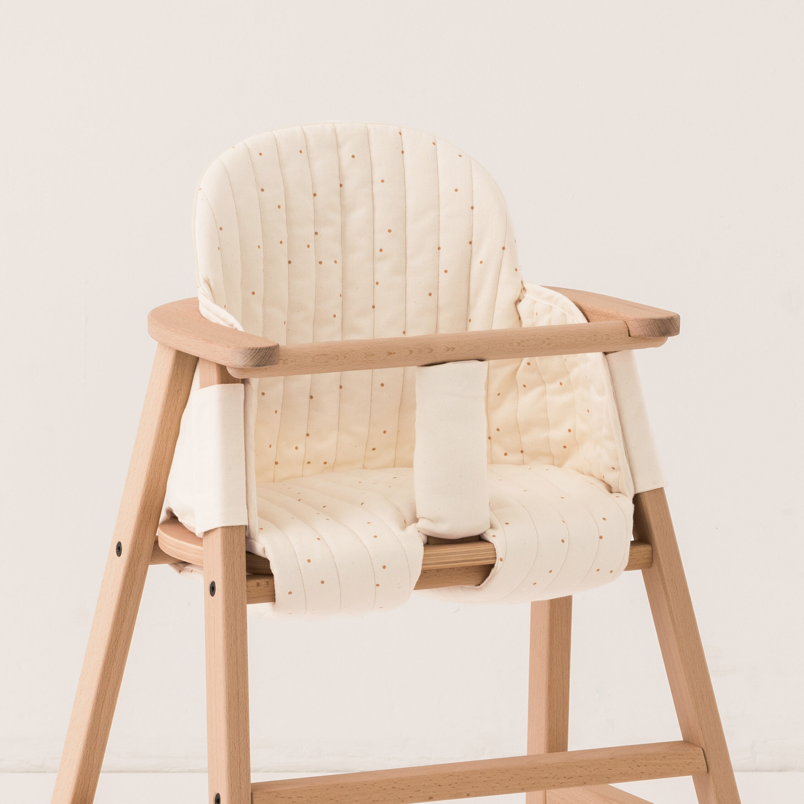 Un produit complet et évolutif, que vous pouvez agrémenter de sa tablette pour les repas de bébé ou encore d’une assise confortable en coton bio matelassé (vendus séparément).