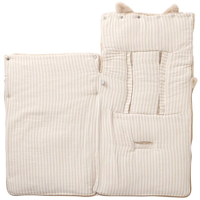 Un nid d’ange en fausse fourrure très douce pour garder bébé bien au chaud ! Entièrement ouatiné et doublé de popeline rayé beige en 100% coton, cet adorable nid d’ange est entièrement zippé et comporte des fentes universelles à scratch pour le passage des sangles (siège auto ou poussette). Avec ses oreilles de lapin, ce nid d’ange va rendre bébé encore plus craquant !