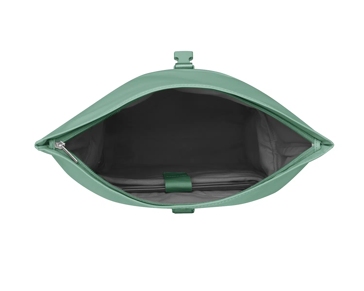 Ouverture large de la poche principale avec fermeture éclair et rabat supérieur avec boucle ;