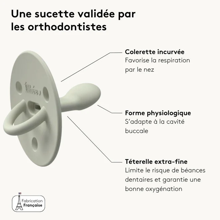 – Respiration naturelle et sommeil apaisé : La finesse unique de la sucette favorise la respiration par le nez, assurant une oxygénation optimale et des nuits plus sereines.