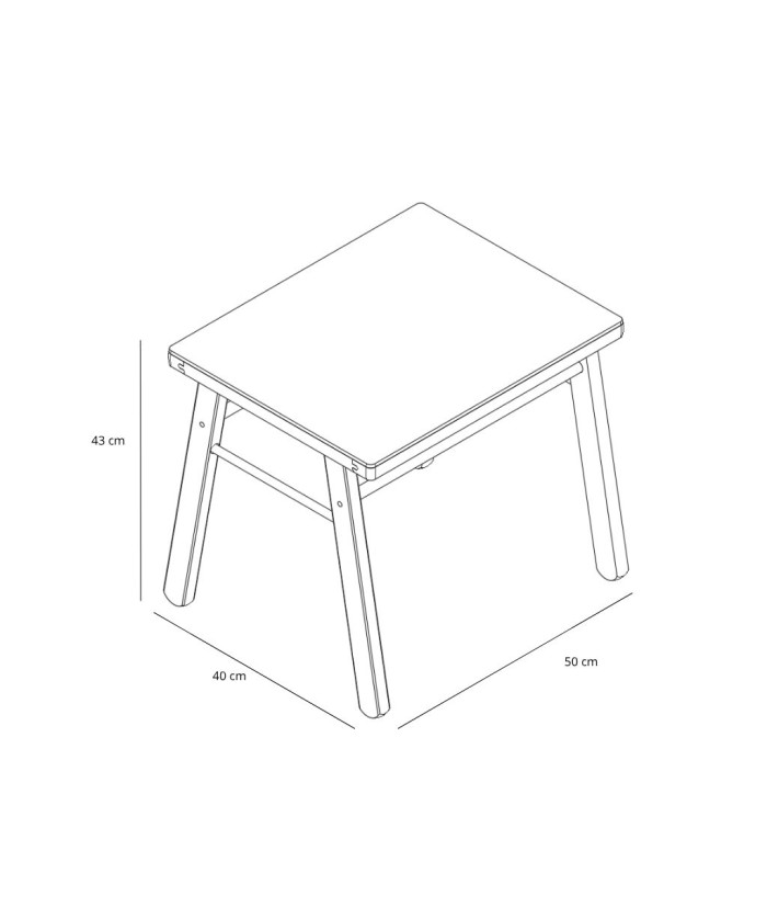 CARACTÉRISTIQUES : Table basse. Essence : hêtre massif, Finition : vernis naturel ou laquée. Plateau : médium imprimé qualité E1. Dimensions : 50 cm x 40 cm, hauteur 43 cm. Charge maximale admissible sur le plateau : 20 kg.